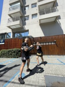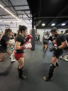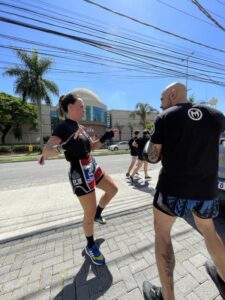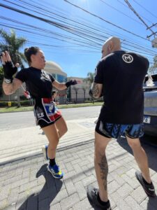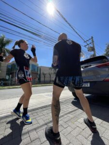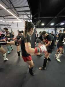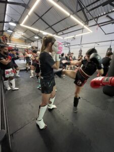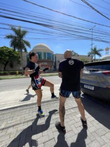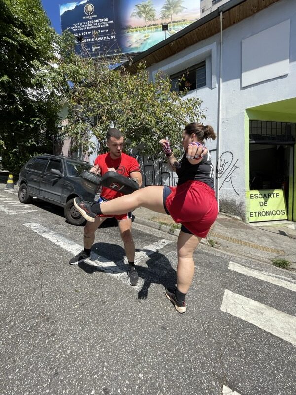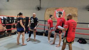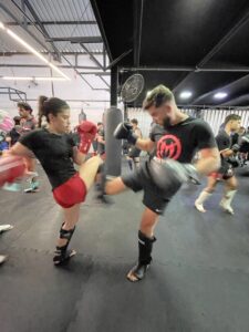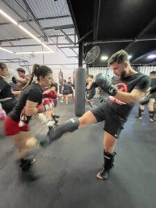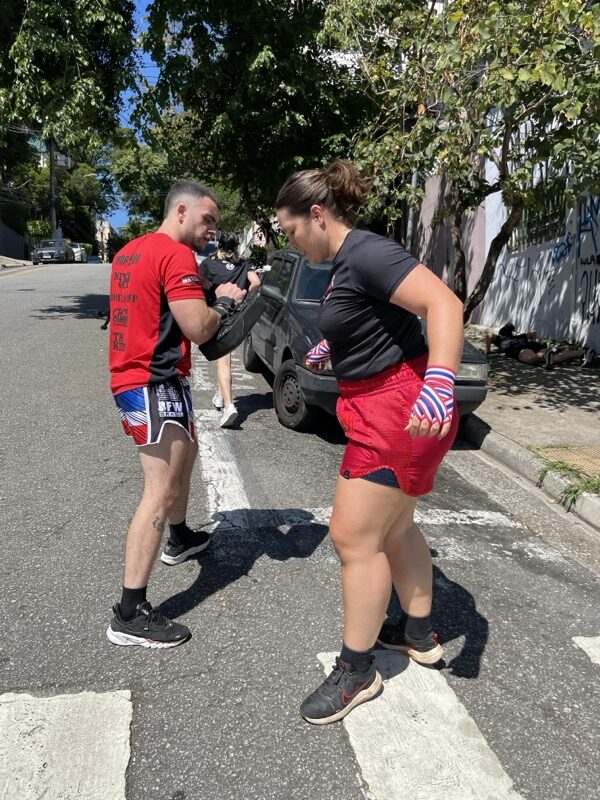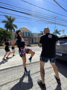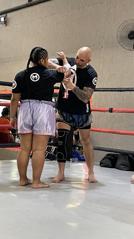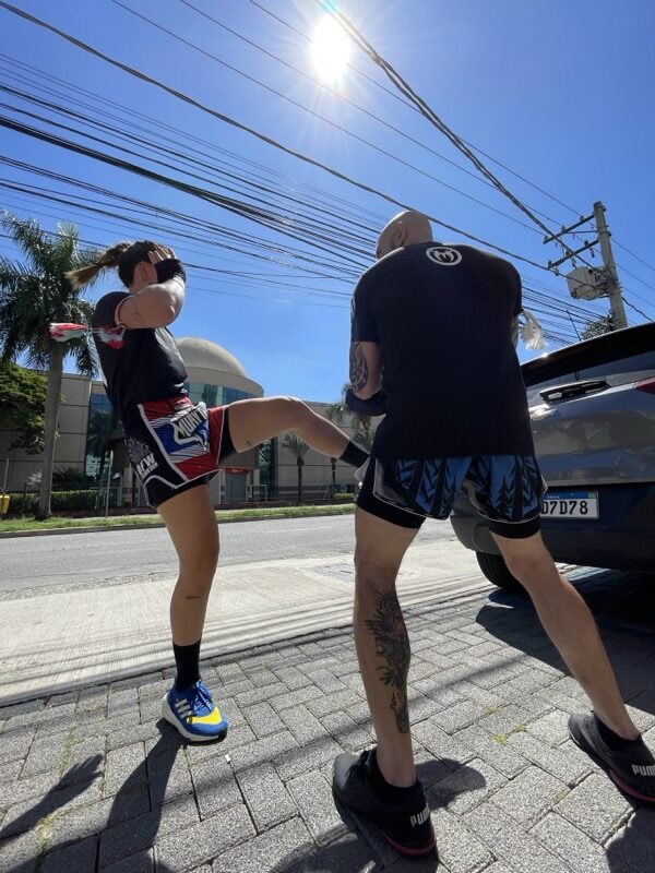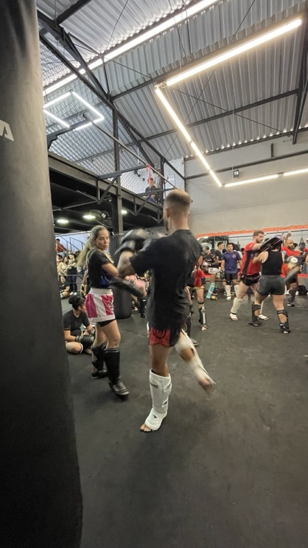 Além da inserção da atividade física de preparação para a prática do Muay Thai, você já começa a dar seus primeiros socos e ajustar seus primeiros chutes, criando uma base segura e bem definida de evolução.