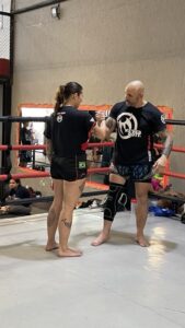 Alunos em nível mais avançado, fazem transição de movimentos dos membros superiores com socos e cotoveladas e membros inferiores com joelhadas e chutes com muito mais naturalidade e contundência, sabendo também aplicar as defesas de contra golpes, as combinações são mais precisas e eficientes, as defesas mais seguras e os movimentos com mais base e equilíbrio.