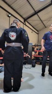 Alunos em nível mais avançado, fazem transição de movimentos dos membros superiores com socos e cotoveladas e membros inferiores com joelhadas e chutes com muito mais naturalidade e contundência, sabendo também aplicar as defesas de contra golpes, as combinações são mais precisas e eficientes, as defesas mais seguras e os movimentos com mais base e equilíbrio.